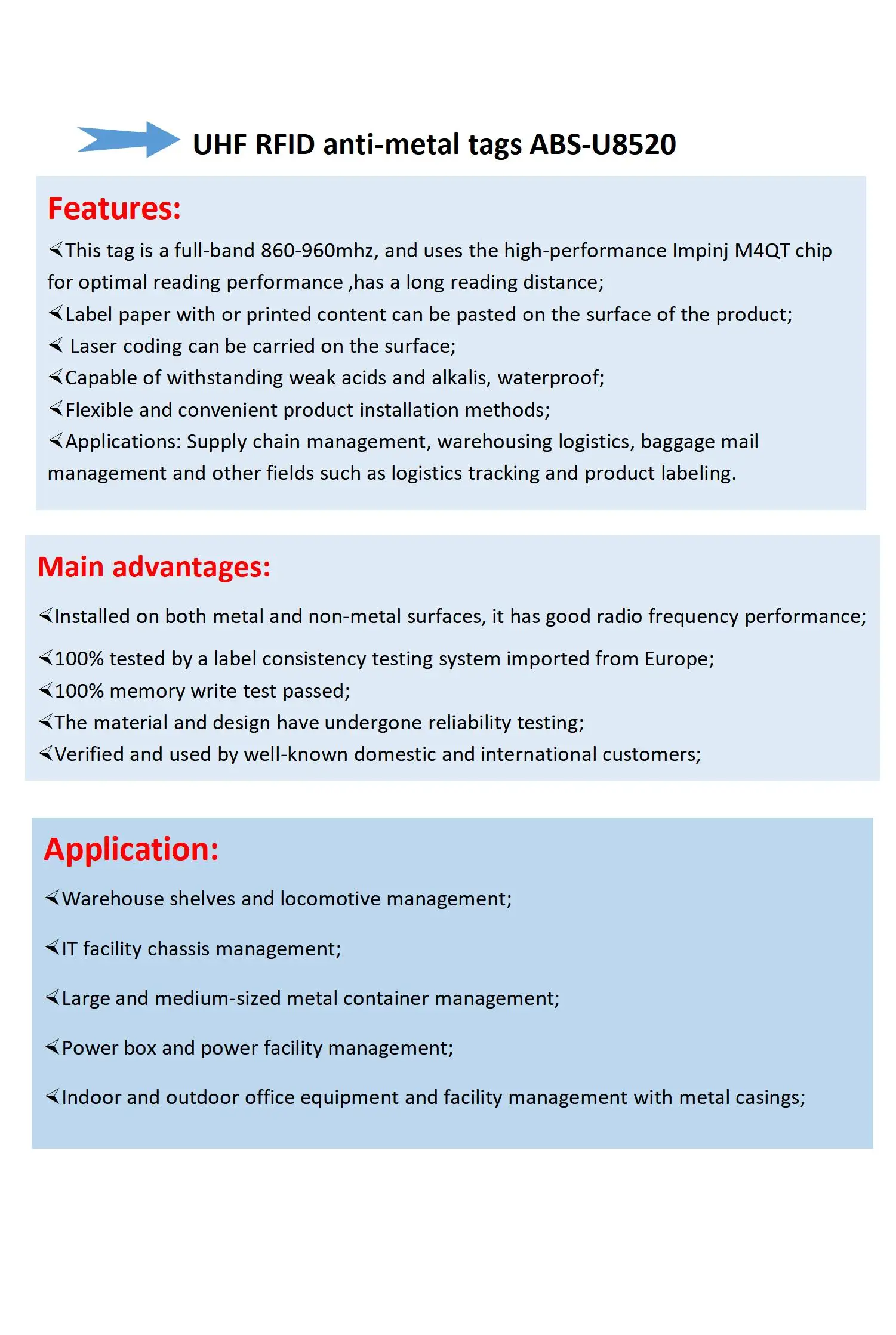 3,Wide frequency EU 865-868mhz and US 902-928mhz,1-18m (depend on reader and antenna/application)