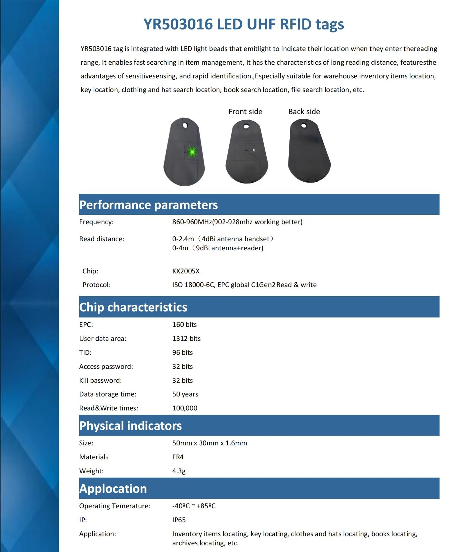 UHF RFID Tag Passive LED Light RFID LED Tag UHF 860-960MHz 0-4M for Keychain Keyfobs Locating Book Vehicle Personal Access Model:YR503016